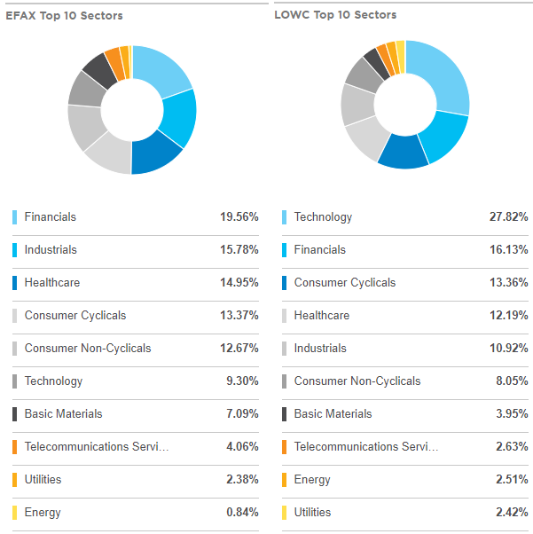 - LOWC는 기술주, 금융주, 소비재에 주로 투자되어 있습니다.