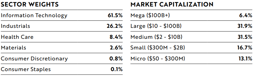 - PRNT는 IT기업에 61%, 산업 섹터가 26% 차지하고 있는 ETF입니다. IT 회사들이 3D 프린터와 많은 관련이 있는 듯 보이는데요, 기술주 위주의 포트폴리오라 성장성에 큰 기대를 두고 있는 것 같습니다.