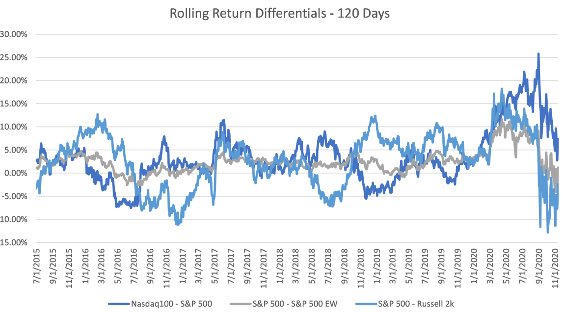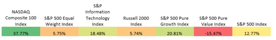2020년 한해에는 다양한 벤치마크 지수 간 수익률 격차가 매우 컸습니다.