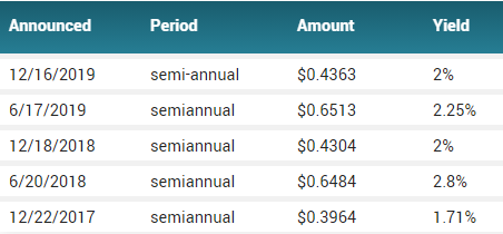 IOO는 반기배당을 실시하고 있으며, 배당률은 2.31%입니다.