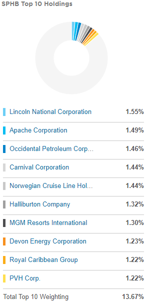 SPHB 상위 10개 구성 종목