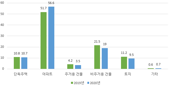 부동산 파트에서는 내 집 마련으로 아파트가 국민들에게 선호되는 경향이 있다는 걸 파악할 수 있습니다.