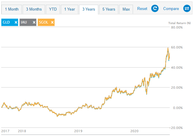 여기서는 금 ETF인 "SGOL"을 중심으로 대표적인 금 종목인 "GLD, IAU"와 비교분석을 해보도록 하겠습니다.