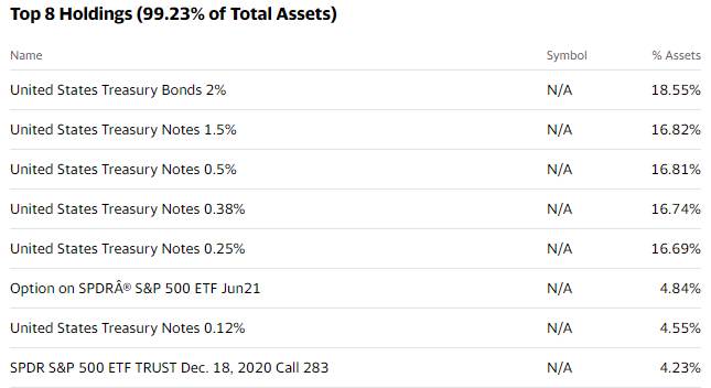 90.16%의 비율로 미국 국채를 가지고 있고, 나머지 10% 정도가 S&P500 지수의 옵션을 가지고 있습니다.