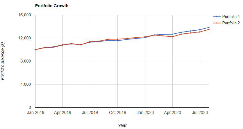 여럿 종목을 다양한 비율로 구성해서 그래프를 비교해보았지만, 이게 제일 비슷하게 흘러가더라고요.