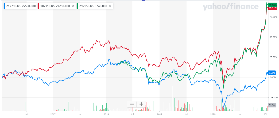 | ETF 비교) KODEX 증권 vs TIGER 증권 - 수익률 차이는? (0) | 2021.01.12 |