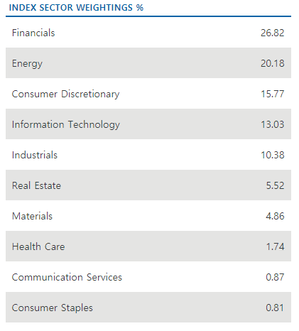 금융주와 에너지 관련주, 소비재 주가 반 이상 차지되어 있는데요, 이 세가지 섹터가 앞으로 성과가 낮을 것으로 예상된다면 HIBS에 단기 투자하는 것이 높은 수익률을 예상해볼 수 있습니다.