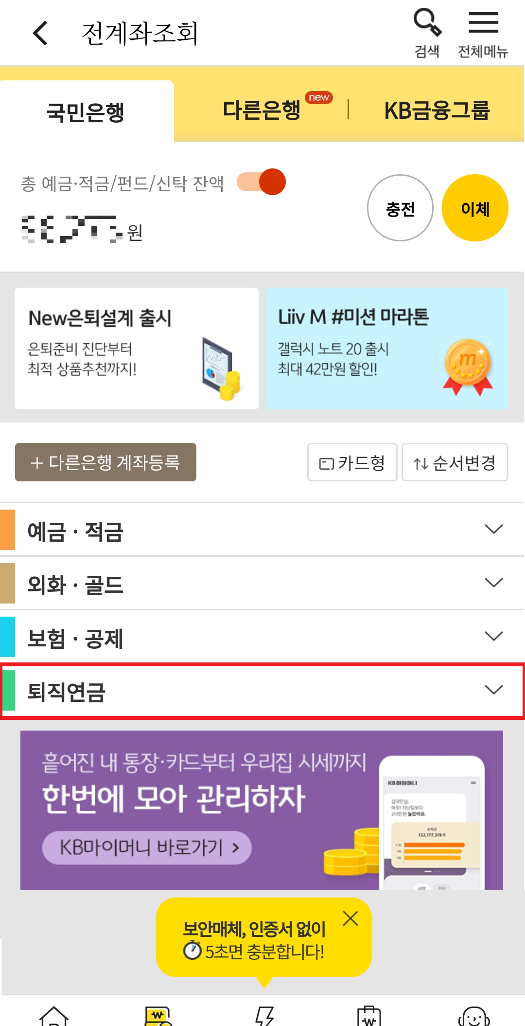 국민은행 퇴직연금 수익률 조회하기