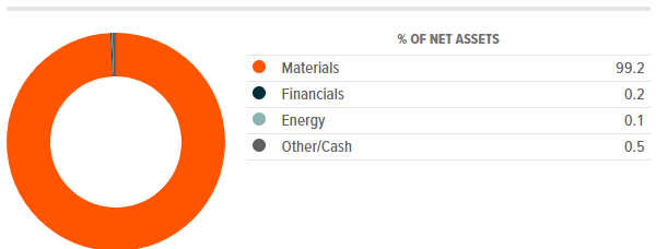 - SIL은 은과 관련된 업체만을 담고 있기 때문에 원자재로 분류된 섹터에 99% 투자됩니다.