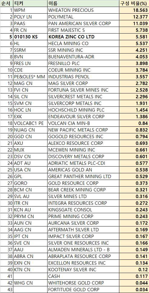 | 추종 지수 | Solactive Global Silver Miners Index |