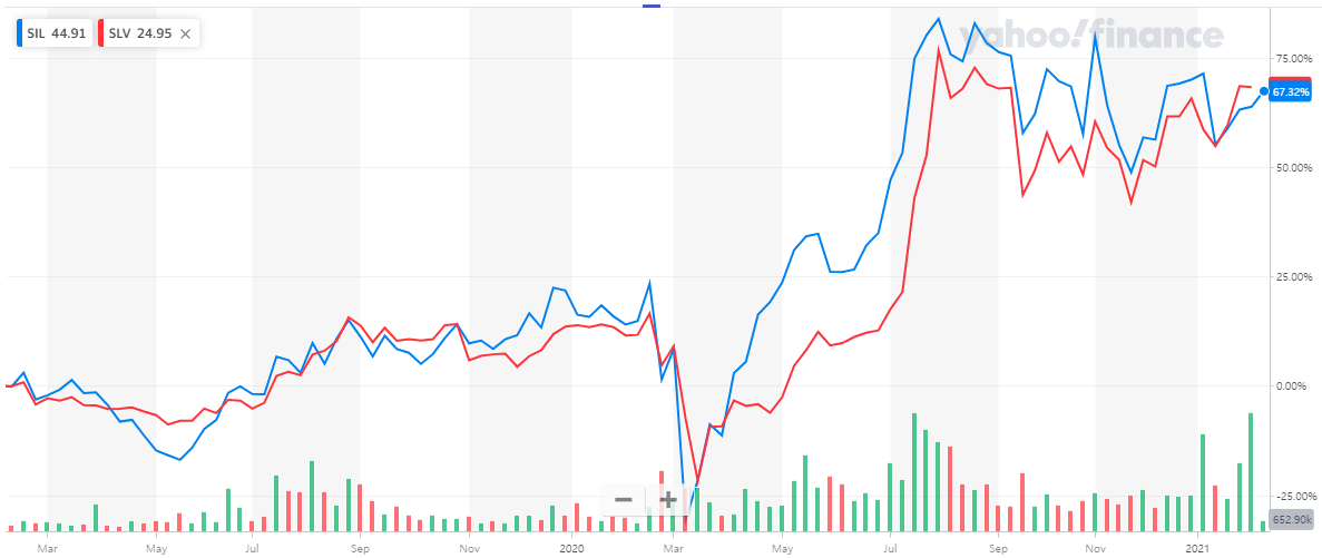SIL과 SLV 종목은 대체적으로 비슷한 흐름을 보이고 있습니다.