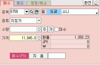 위와 같이 일본주식 매수/매도를 할 수 있는 창이 뜨면서 매매 주문이 가능합니다.
