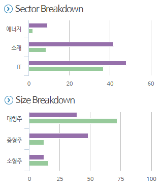 IT 업종과 소재, 에너지 순으로 섹터가 구성되어 있으며, 대형주의 편입 비율이 많은 지수입니다.