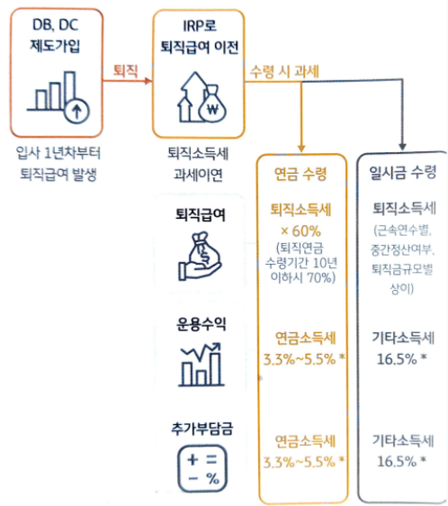 이후에 3단계에서 퇴직금 수령할 때에 연령에 따라 3.3~5.5%의 세금을 떼고 받습니다.