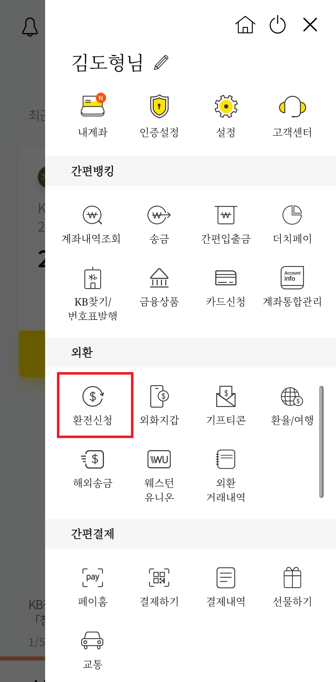 먼저 환전을 위해서는 국민은행 계좌가 있어야 합니다.