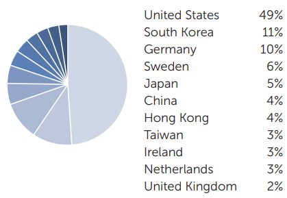- 이외 한국이 11%, 독일, 스웨덴, 일본 순으로 포트폴리오가 구성되어 있습니다.