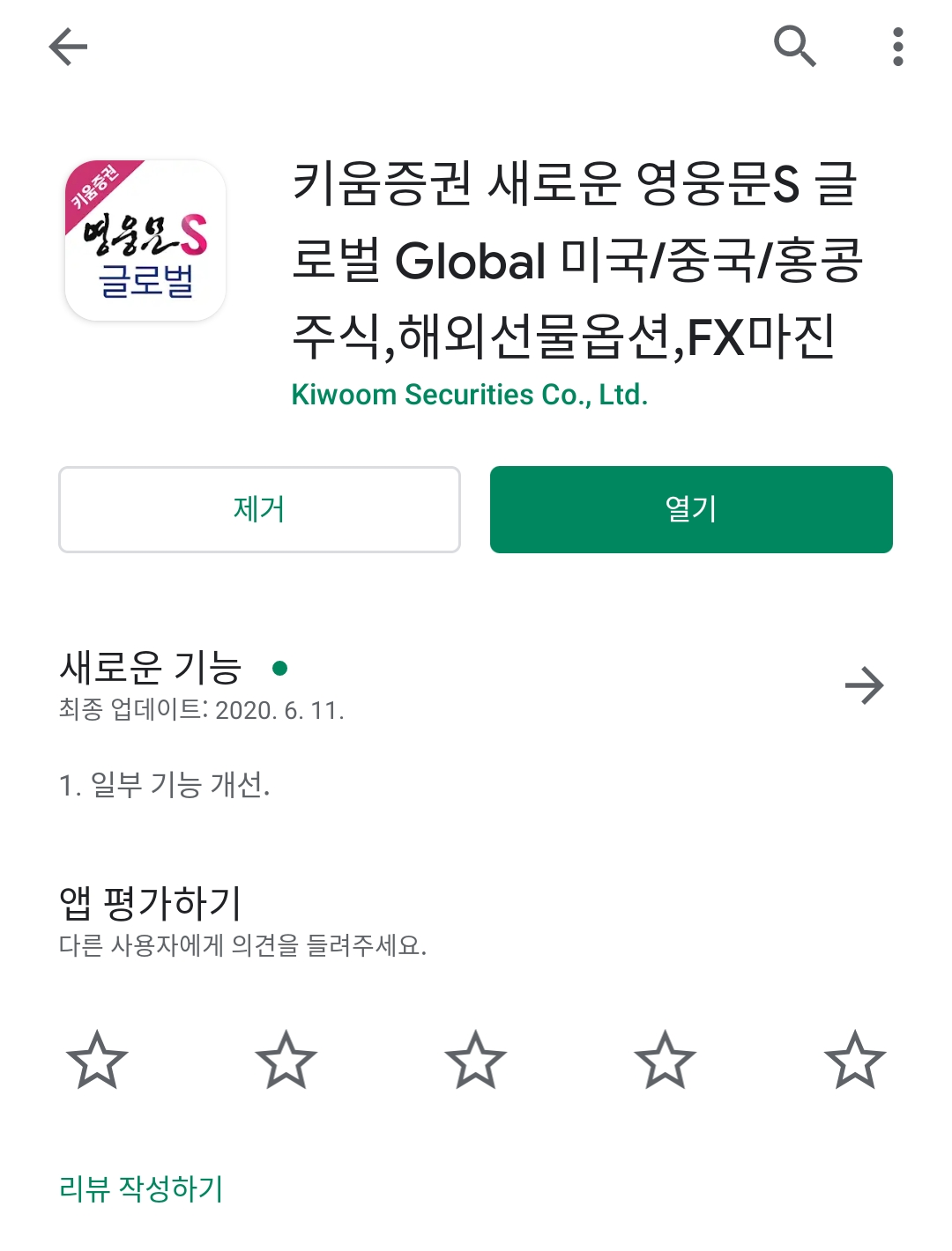 1. 스마트폰에서 "영웅문S 글로벌" 앱을 다운로드 받아 실행합니다.