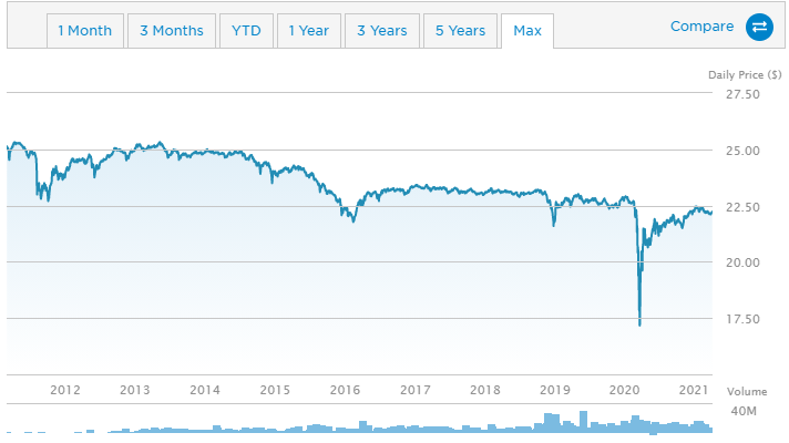 - 지난 10년간 BKLN은 안정적인 그래프 흐름을 보여주고 있습니다.