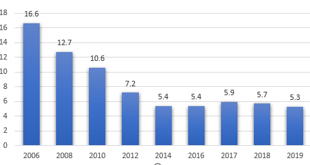 최저주거기준 미달가구 비율은 2006년 조사 시작 이래로 계속 낮아지는 경향을 보이고 있습니다.