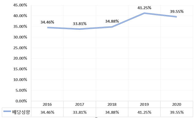 - 직전 4년간 평균에 비해서 배당성향은 높은 수치입니다.