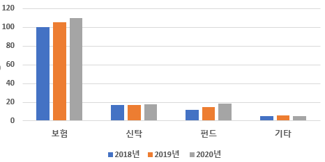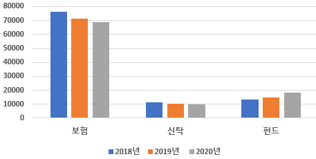| 구분 | 생명보험사 | 손해보험사 | 신탁 | 펀드 |