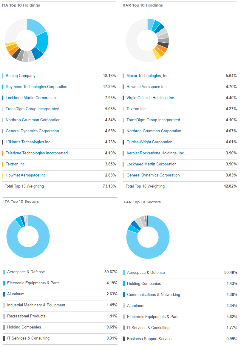 미국의 항공우주산업에 관련한 회사에 투자하는 ETF가 있는데요, 바로 ITA, XAR입니다.