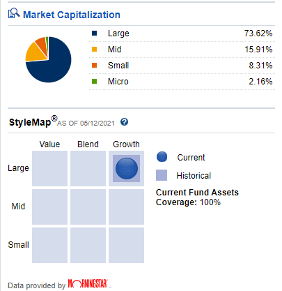 - 종목을 분석하는 모닝스타 리포트에 따르면, "대형 성장주"에 해당하는 ETF입니다.