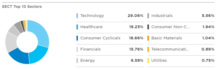 - SECT는 기술주, 헬스케어, 소비재, 금융주 순으로 종목을 보유하고 있습니다.