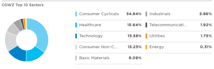 - COWZ를 구성하는 종목 10개는 전체 포트폴리오에서 약 21%를 차지합니다.