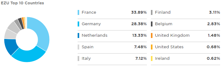 - EZU는 99%의 종목들이 유로화로 구성되어 있습니다.