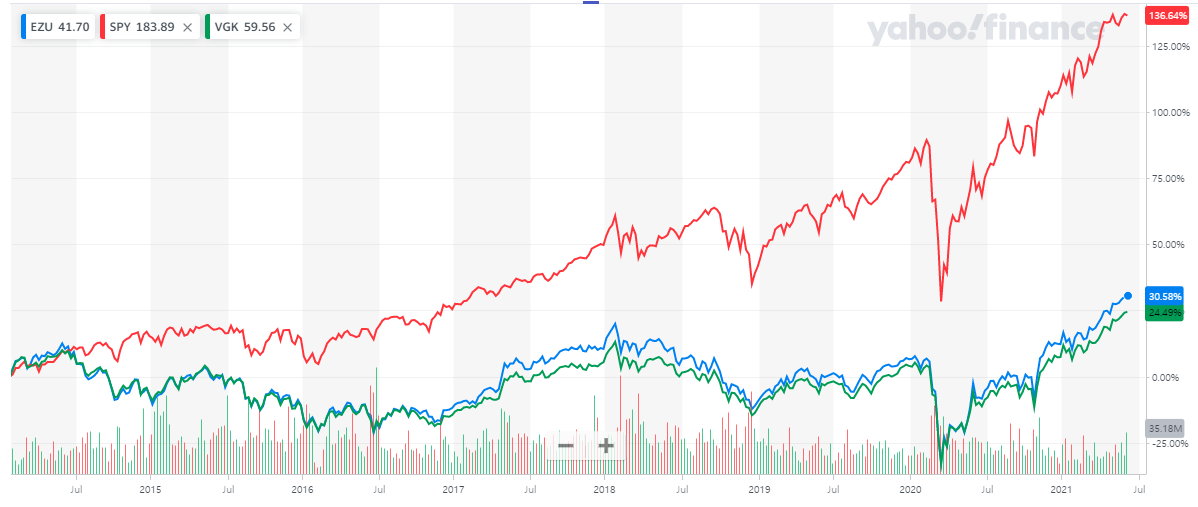 VGK와 EZU를 비교해보면 전반적으로 EZU의 성과가 더 좋았습니다.