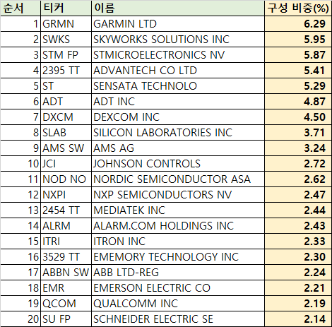| 추종 지수 | INDXX Global Internet of Things Thematic Index |