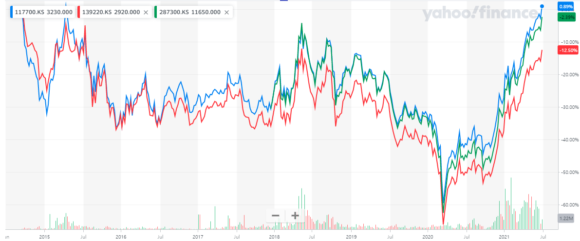 | 종목 코드 | 117700 | 139220 | 287300 |