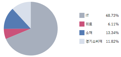- 구성 종목 중 삼성전자와 SK하이닉스가 높은 시가총액을 차지하고 있어서 IT 섹터에 많이 투자되어 있습니다.