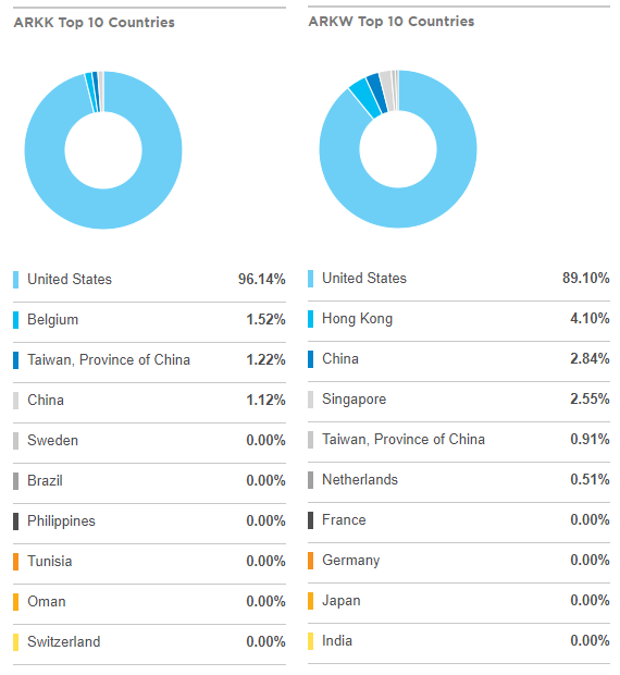 ARKK와 ARKW의 상위 10개 국가입니다.