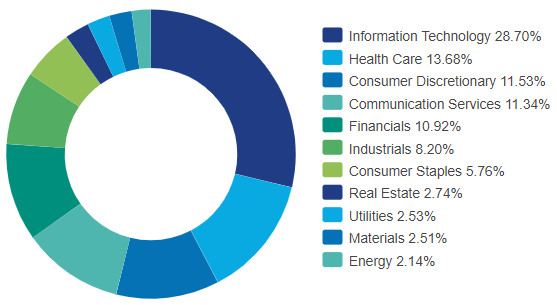 - IT주가 28%로 가장 많은 비율로 구성되어 있습니다.