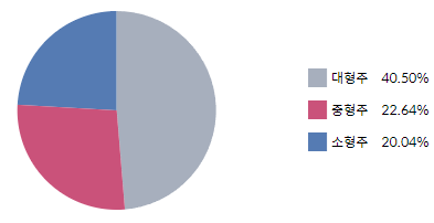 - 대형주의 비중은 40% 정도이며, 중소형주의 비중이 각각 20% 정도 되고 있습니다.