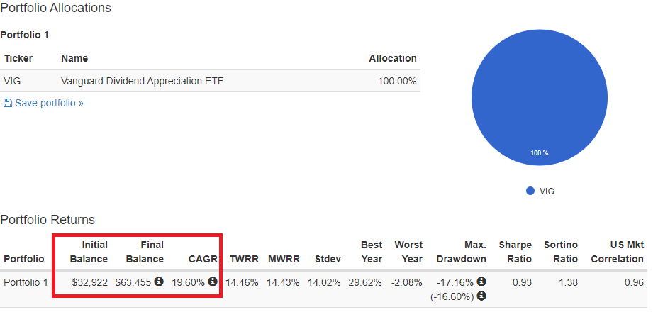 $32,922로 시작했던 투자 금액이 3년 후에 $63,455로 돌아오네요!