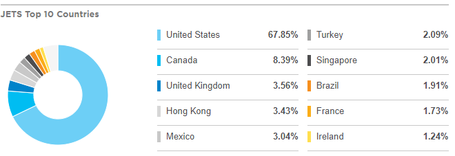 JETS는 미국의 비중이 67%로 제일 높습니다. 캐나다까지 포함하면 75%가 넘는 수준이네요.