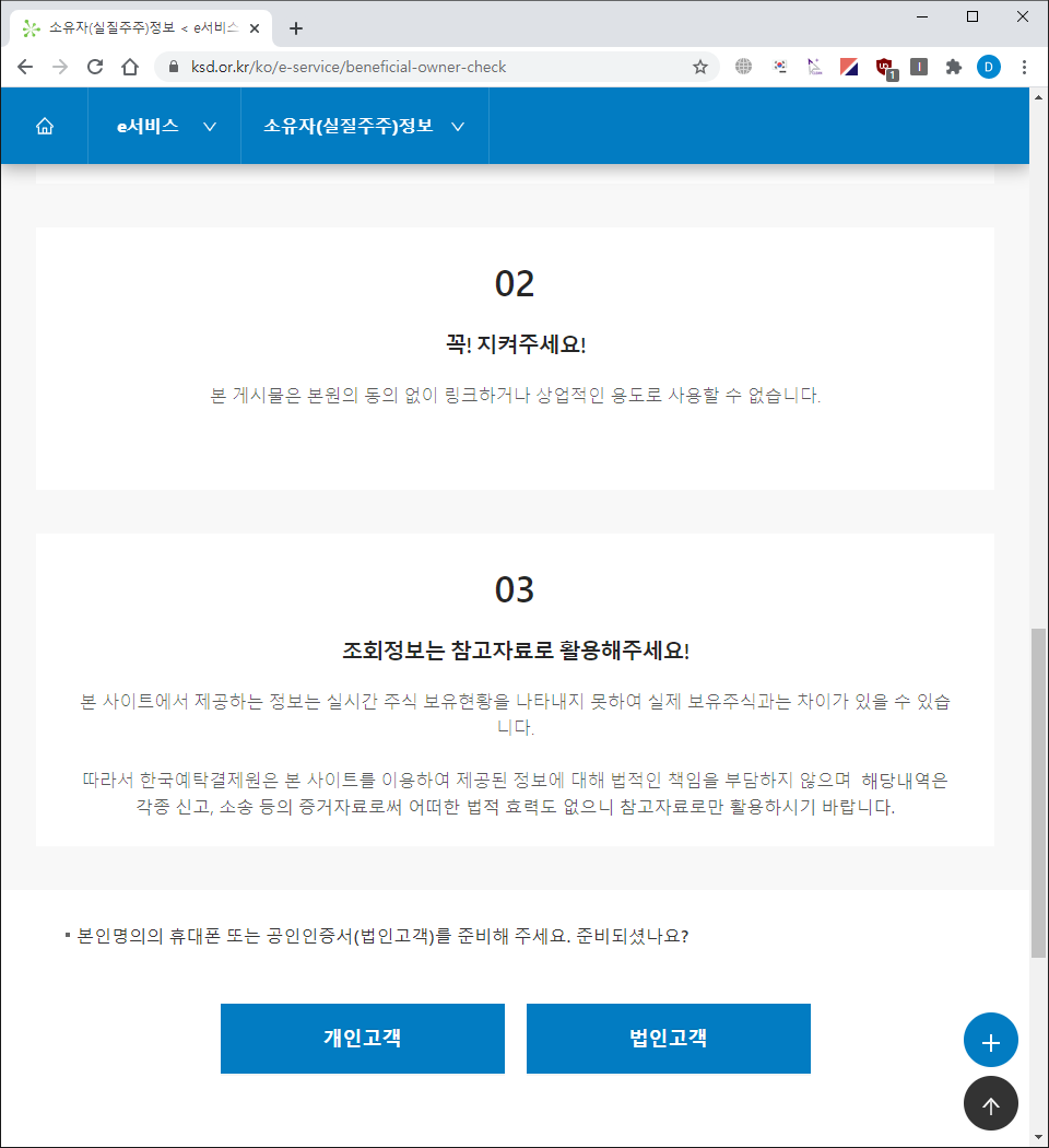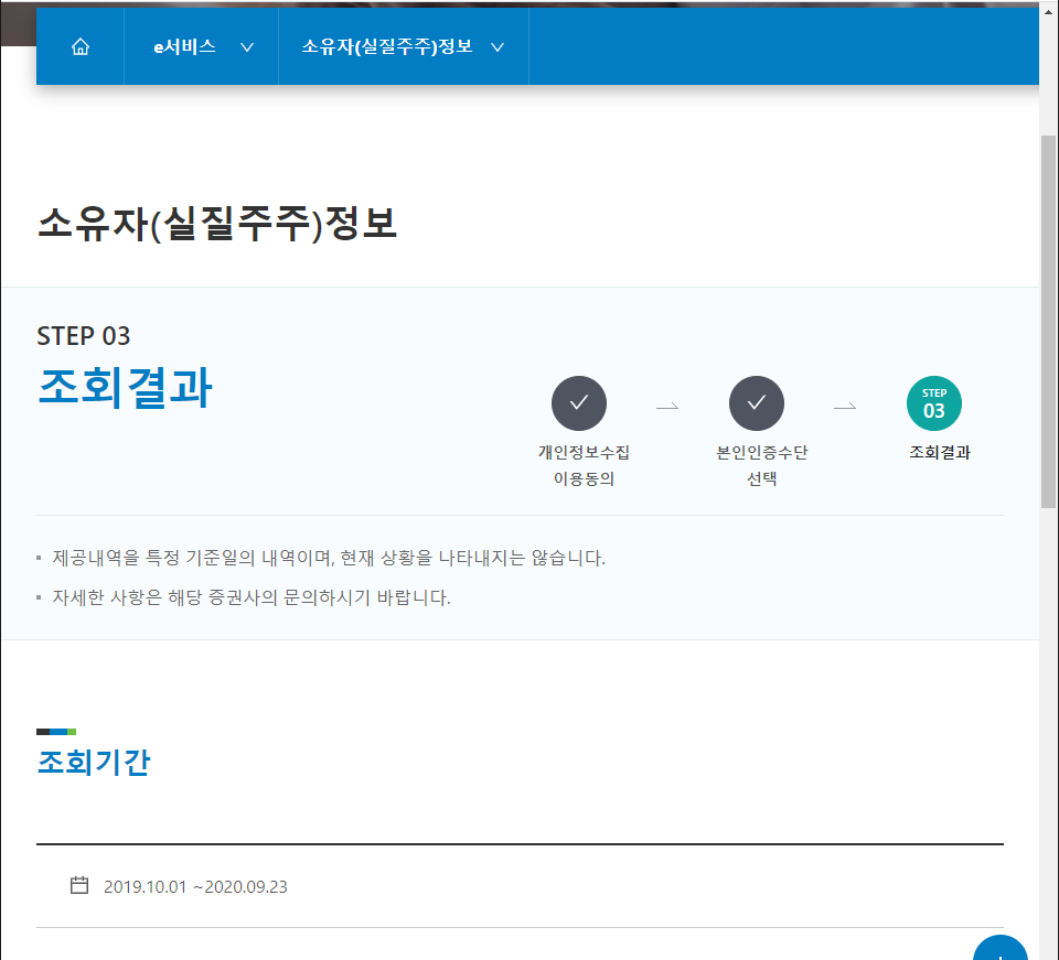 위와 같이 한국예탁결제원의 "소유자(실질주주)정보 조회 서비스"를 어떻게 이용할 수 있는지 알아보았습니다.