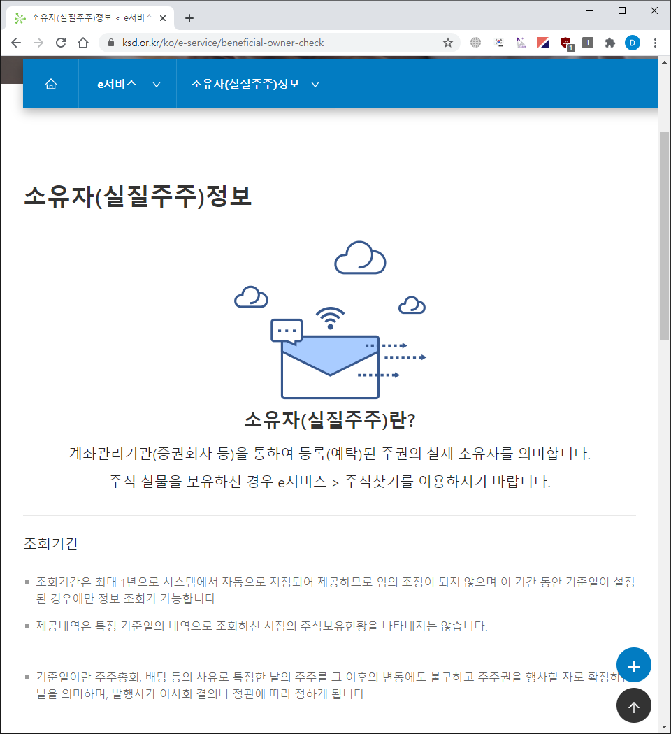 이 글에서는 한국예탁결제원의 "소유자(실질주주) 정보 조회 서비스"를 어떻게 이용할 수 있는지 확인해보도록 하겠습니다.