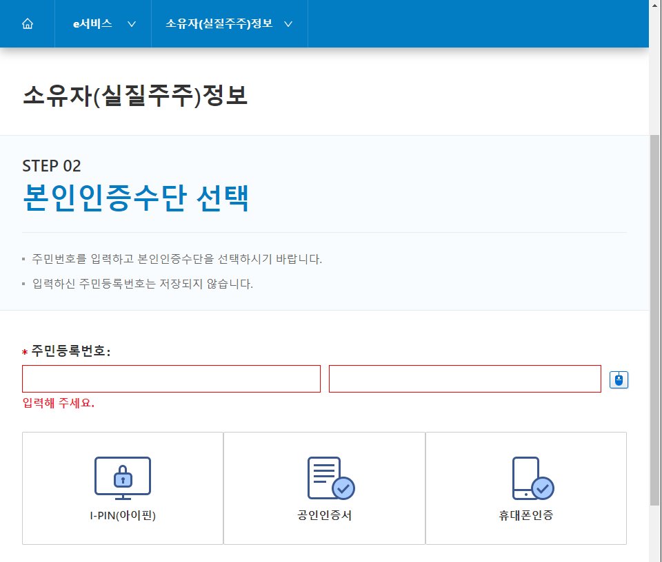 6. 주민등록번호를 입력하고 선호하는 본인인증수단을 선택하여 본인인증을 수행합니다.