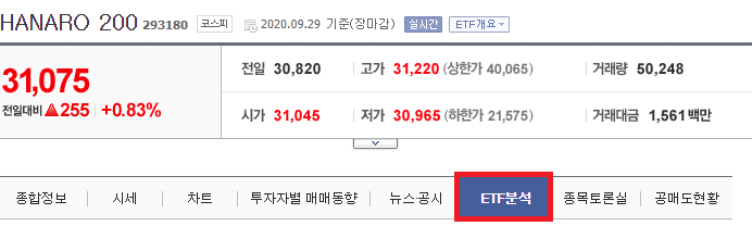 여기서는 예시로 위 "HANARO 200" 종목의 괴리율을 확인하여 보도록 하겠습니다.