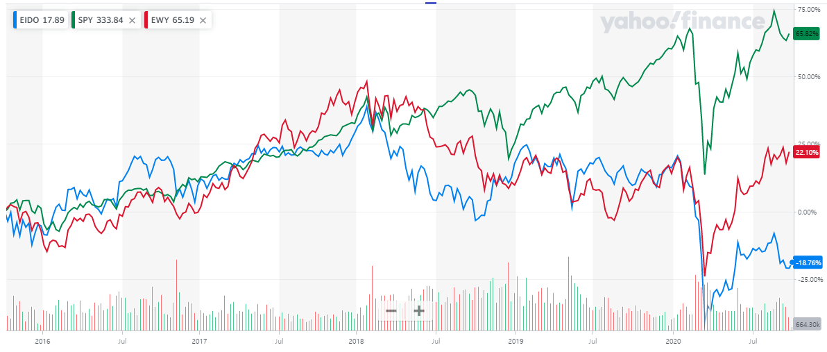 미국과 한국을 대표하는 ETF로 EIDO의 투자 성과를 보도록 하겠습니다.
