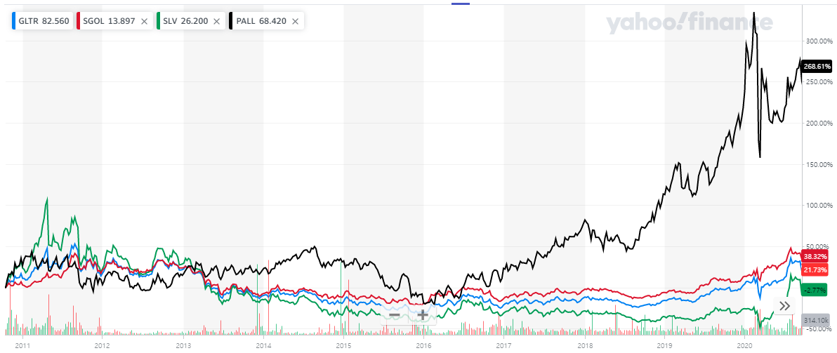 - 10년 수익률 : 팔라듐 >>> 금 > GLTR > 은
