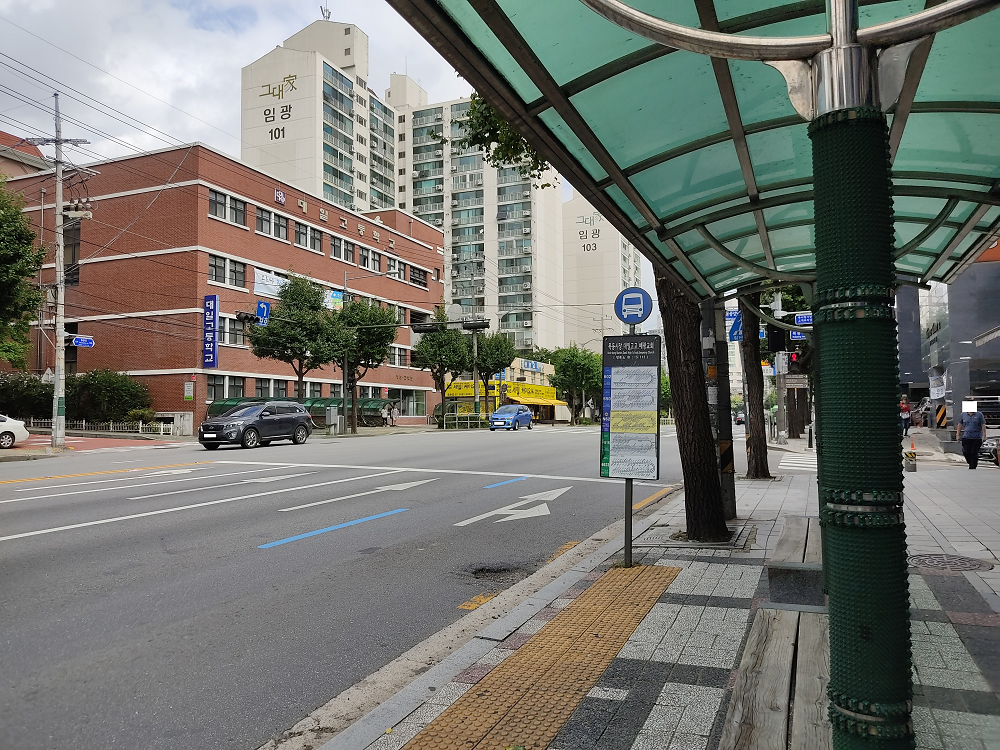 대일고등학교 정문이 나오면 오른쪽으로 방향을 튼다.